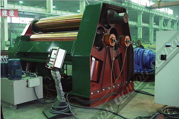 W11H三輥弧線下調(diào)式卷板機是引進瑞典先進技術(shù)而生產(chǎn)的。能將金屬板料一次上料,不需調(diào)頭即可完成板料端部預(yù)彎和卷制成形,機器三個工作輥均為主驅(qū)動輥。升降位移計算機控制,自動調(diào)平,屏幕顯示翻轉(zhuǎn)軸承體(倒頭)裝有傾倒油缸。